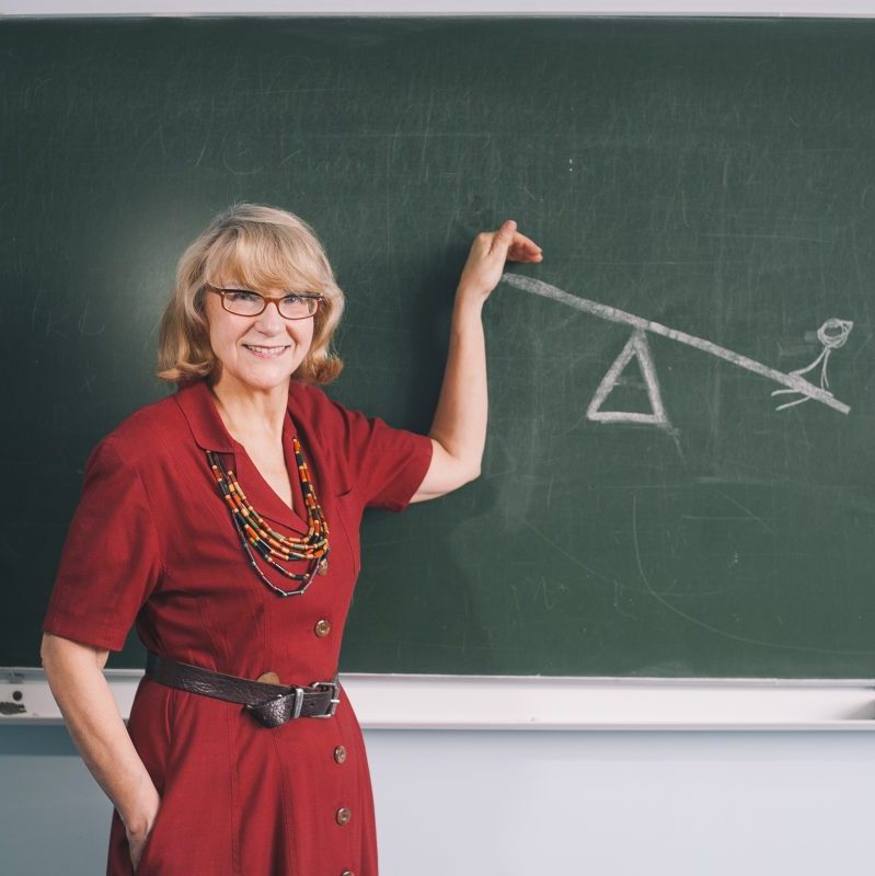 Na zdjęciu: prof. Aldona Pobojeska pokazuje, że w życiu jak na huśtawce, raz jest się na górze, raz na dole. Foto Zbyszek Poledwica