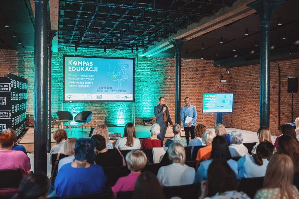 Jak nazwać Kompas Edukacji? Nie jest typową konferencją, jest wydarzeniem, na które nauczyciele przyjeżdżają na własny koszt w czasie wakacji, zamiast na Majorkę czy do Egiptu. Nie ma opłat, nie ma wpisowego, prelegenci nie otrzymują honorariów. Wszyscy przyjeżdżają na własny koszt. Oczywiście, konferencja kosztuje, bo to i pomieszczenie, kawa, woda, ciasteczka, obiad. Mądra gościnność Centrum Nauki i Kultury Młyny Rothera oraz wsparcie Fundacji Orange. I oczywiście pomysł oraz merytoryczna organizacja Profesora Romana Lepperta. To właśnie synergia tych instytucji oraz wizja i merytoryczna organizacja profesora Lepperta tworzą tę wyjątkową formułę.